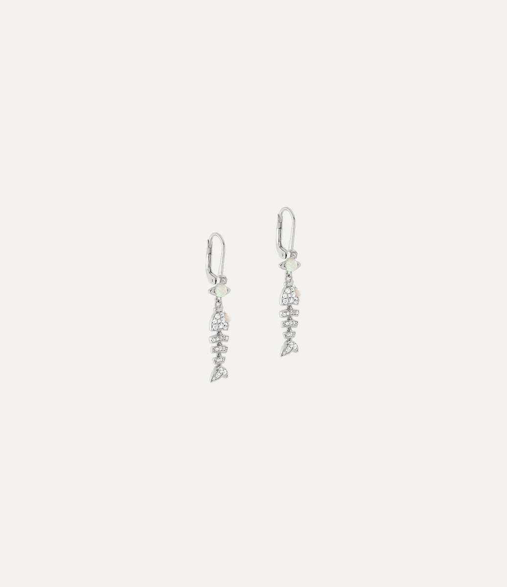 Das Fischgrätenmotiv ist zu einem Markenzeichen des Hauses geworden und taucht seit jeher in vielen Kollektionen auf. Die Lyall Ohrringe greifen dieses Motiv wieder auf und sind mit weißen Kristalldetails und opalisierenden Edelsteinen verziert. Sie sind aus platiniertem Silber gefertigt.