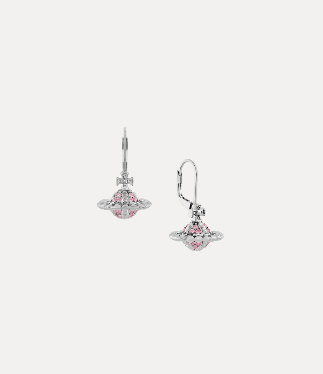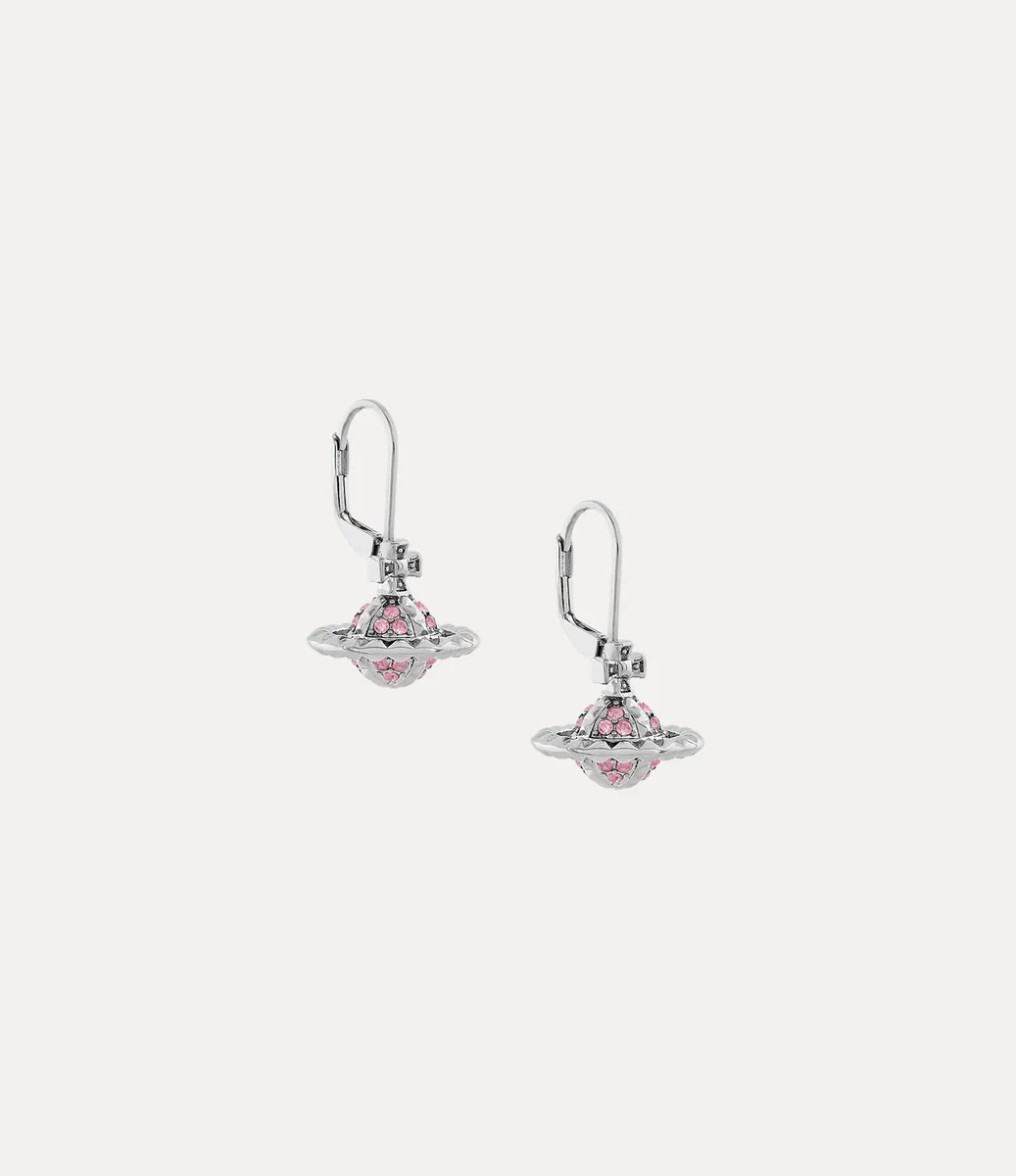 Unsere Mayfair Small Orb Ohrringe wurden in dieser Saison mit hellrosa Kristallverzierungen und einer polierten silberfarbenen Beschichtung aufgefrischt. Das Stück hat ein kugelförmiges Design, das Tradition symbolisiert, umgeben von den himmlischen Ringen des Saturn, die die Zukunft repräsentieren.