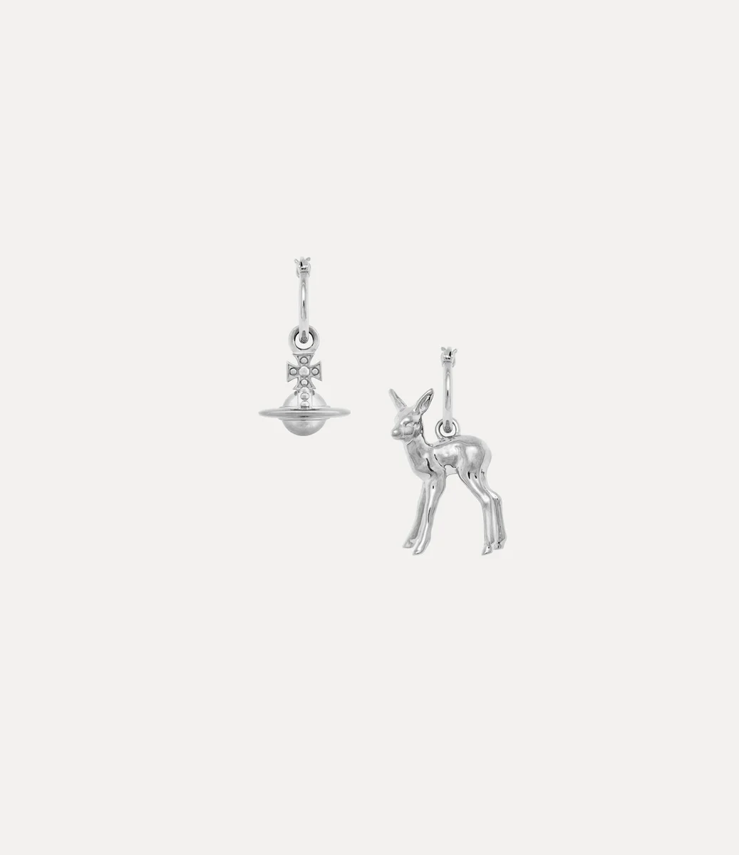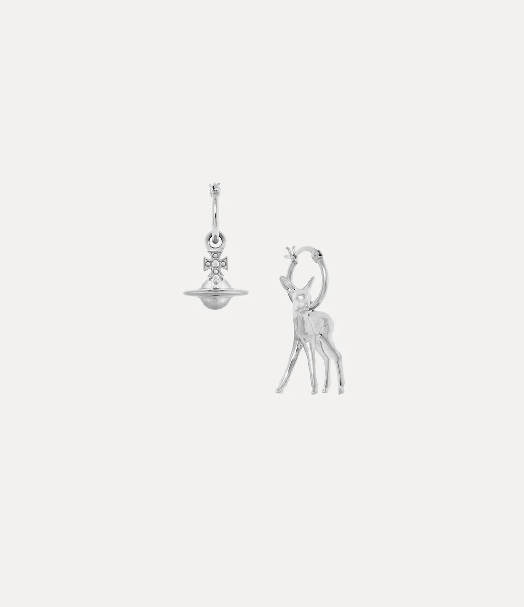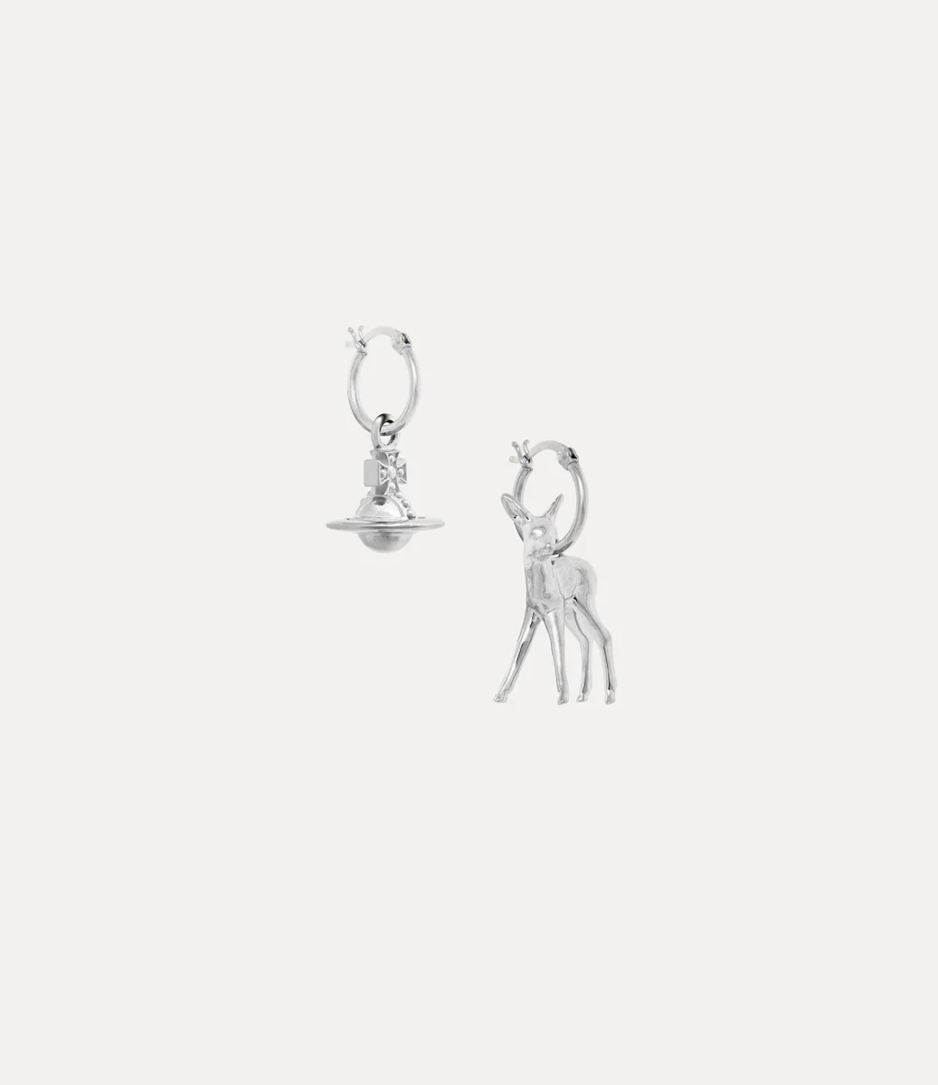 Die Monette Small Ohrringe interpretieren die charakteristische Symbolik des Hauses durch ein asymmetrisches Design neu, mit einem skulpturalen Hirschmotiv auf der einen Seite und dem klassischen Orb-Motiv auf der anderen. Jeder baumelnde Anhänger ist mit strukturierten Details verziert und hängt an einem polierten Creolenring.