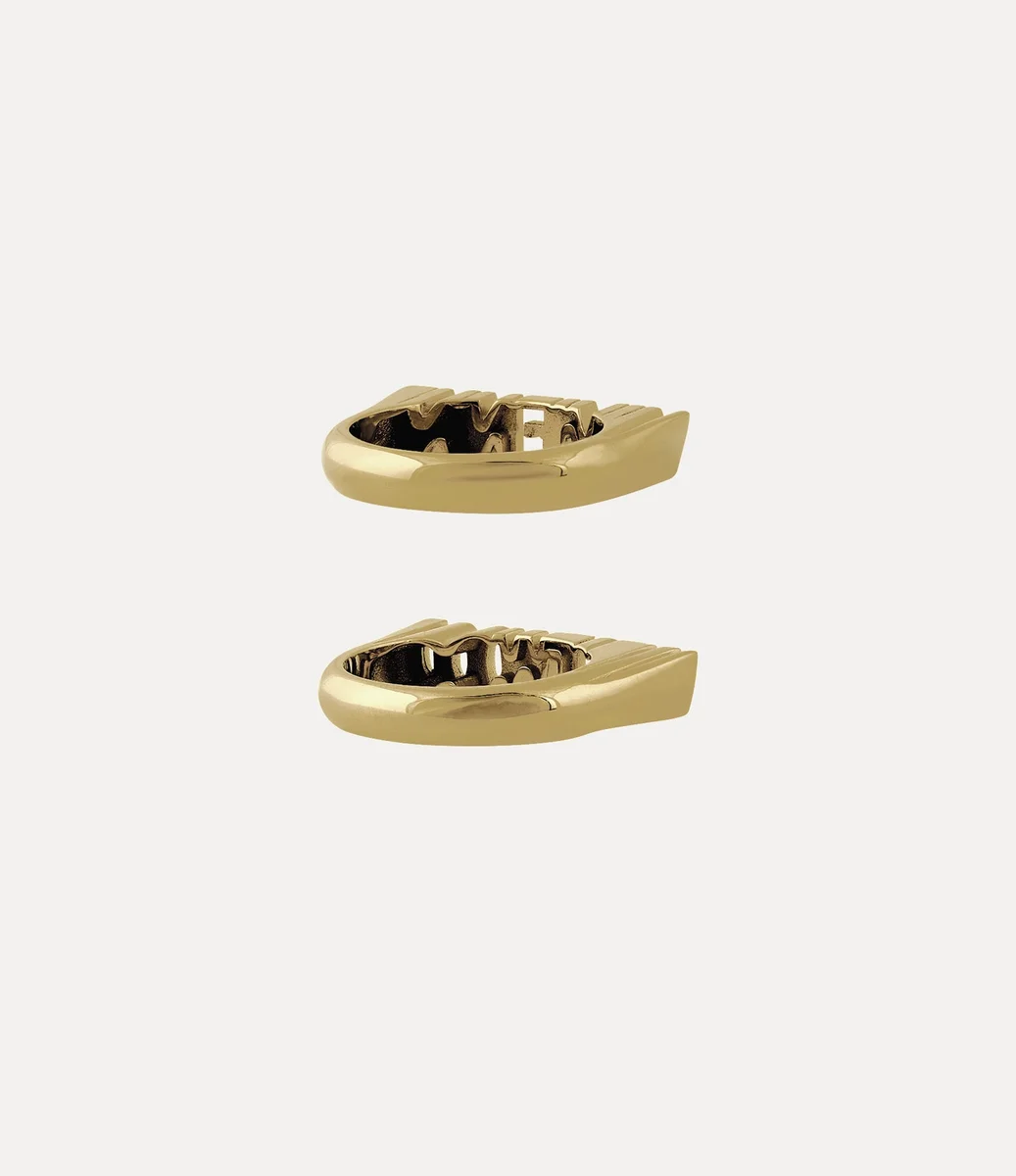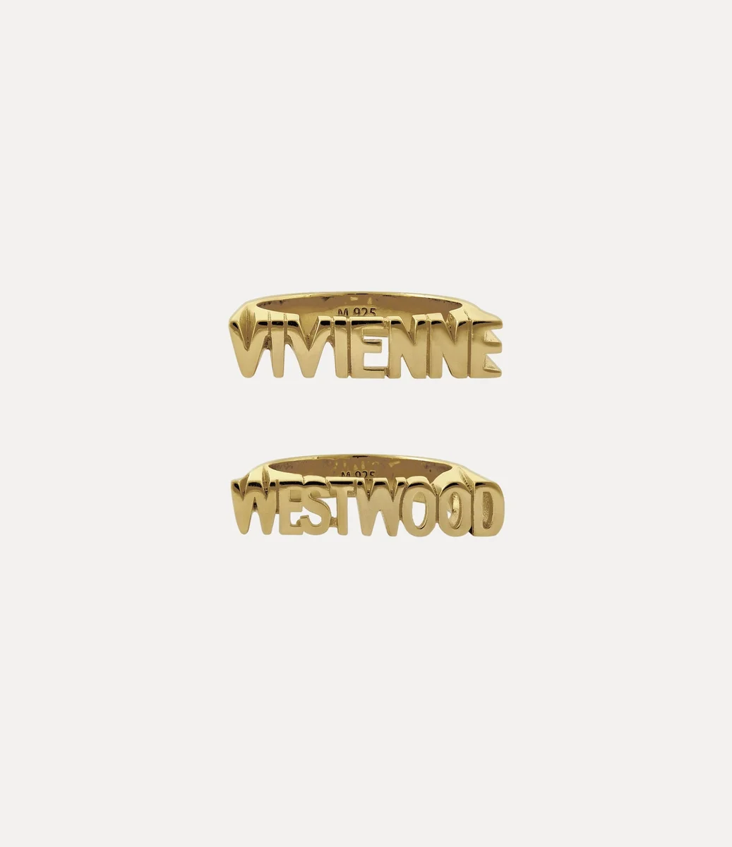 Unser Essex-Ring ist aus recyceltem Silber gefertigt und mit einer polierten Goldbeschichtung versehen. Das Design besteht aus zwei markanten Metallbändern, von denen eines „Vivienne” und das andere „Westwood” bildet, und wird durch aufwendige Ausschnitte akzentuiert, die die Konturen der einzelnen Buchstaben nachzeichnen.