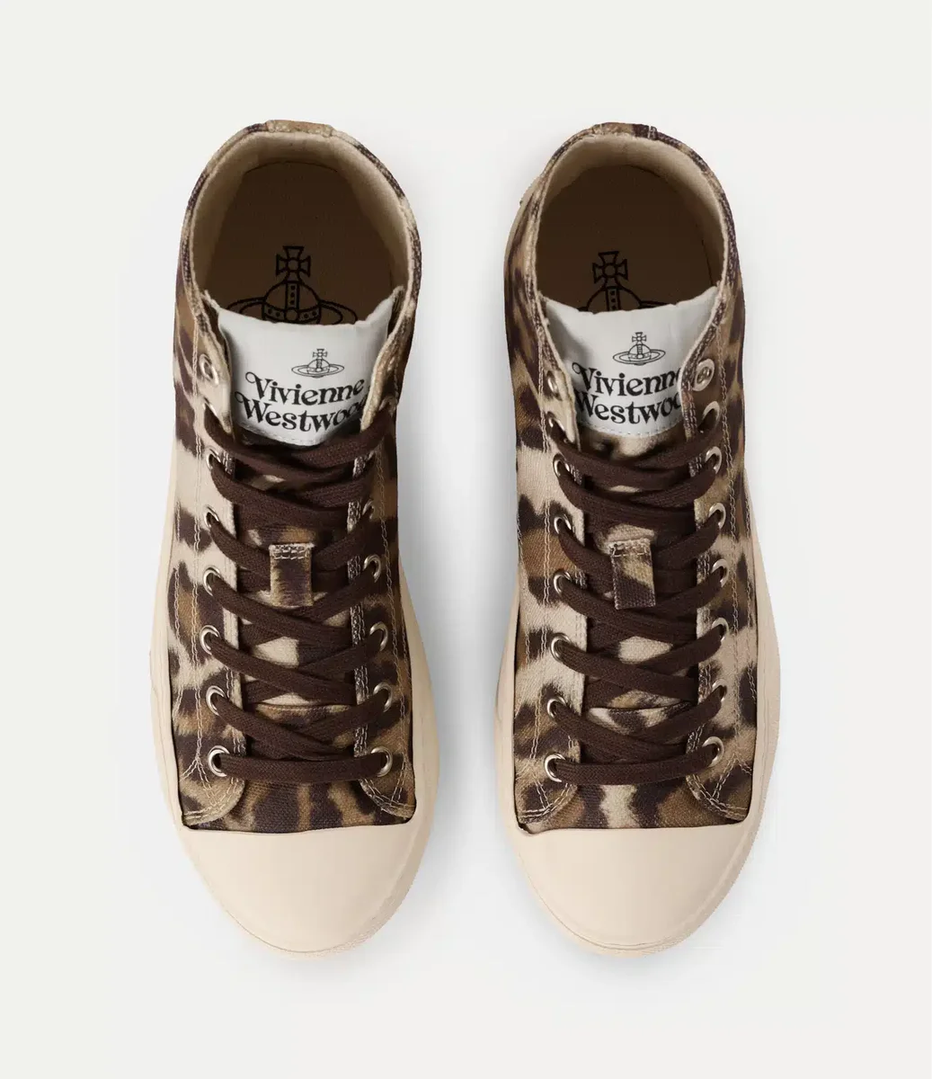 Der klassische High-Top-Plimsoll wird in dieser Saison neu interpretiert und präsentiert sich aus bedrucktem Baumwoll-Canvas mit klassischem Schnürdesign. Mit einer zarten, mehrfarbigen Kugel an der Seite bestickt, wird der Stil durch ein weiches Baumwollfutter abgerundet.