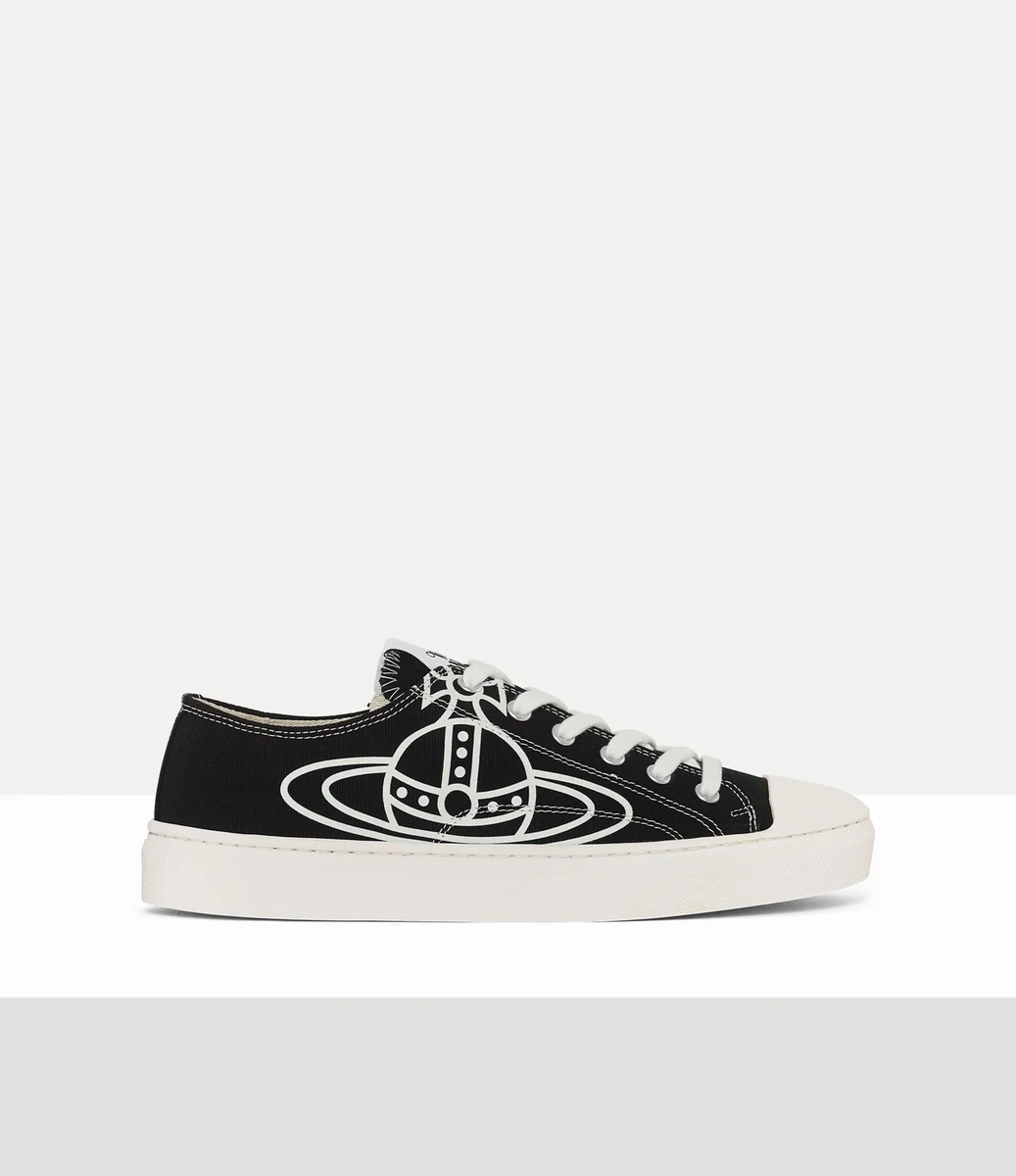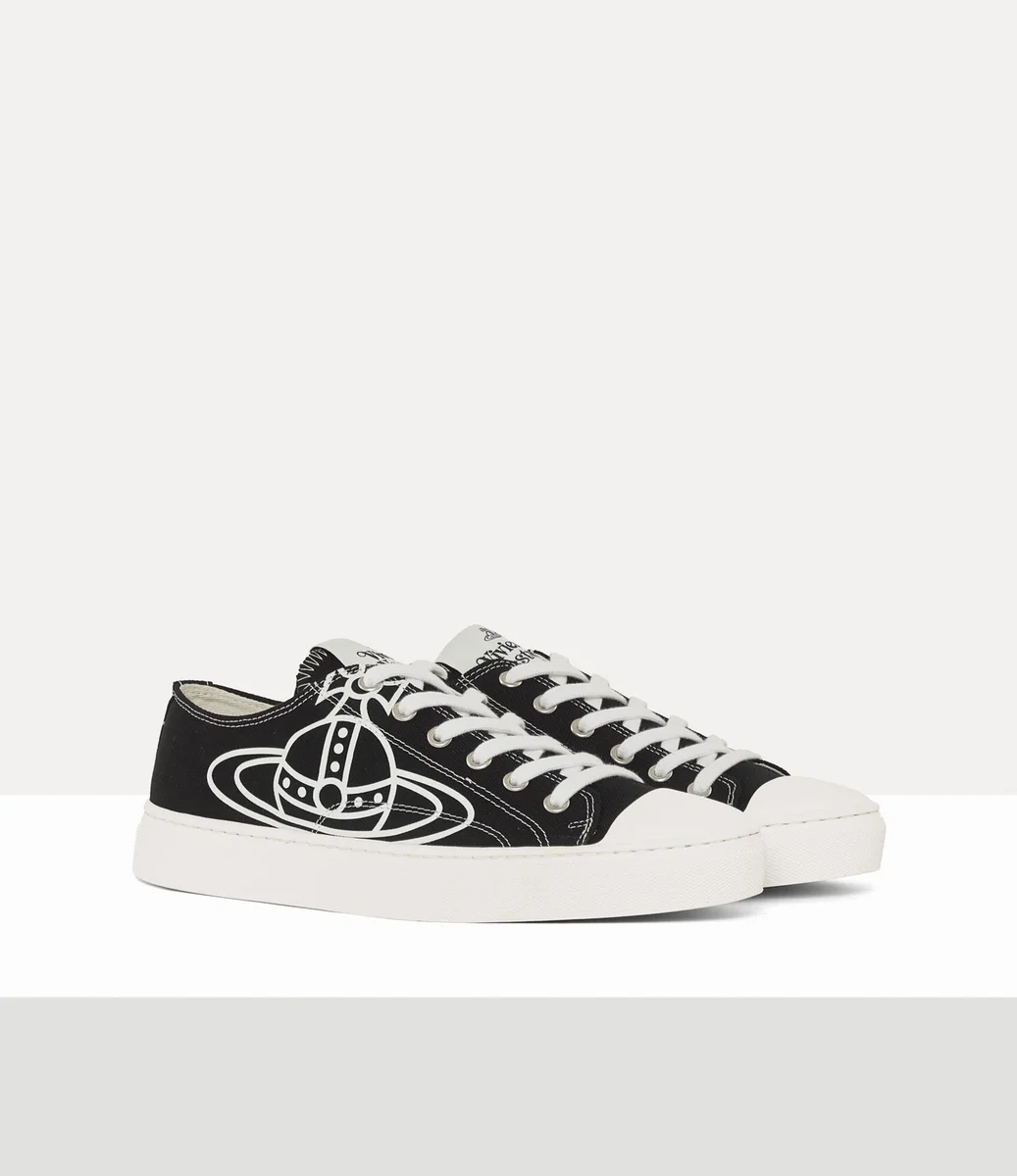 Unsere Low-Top-Canvas-Turnschuhe sind mit dem Archivmotiv „Line Orb” des Hauses verziert – ein Synonym für Viviennes Vision, Tradition in die Zukunft zu tragen. Das Modell verfügt über ein Baumwoll-Canvas-Finish und ist mit einem gewebten Label auf der Zunge verziert.