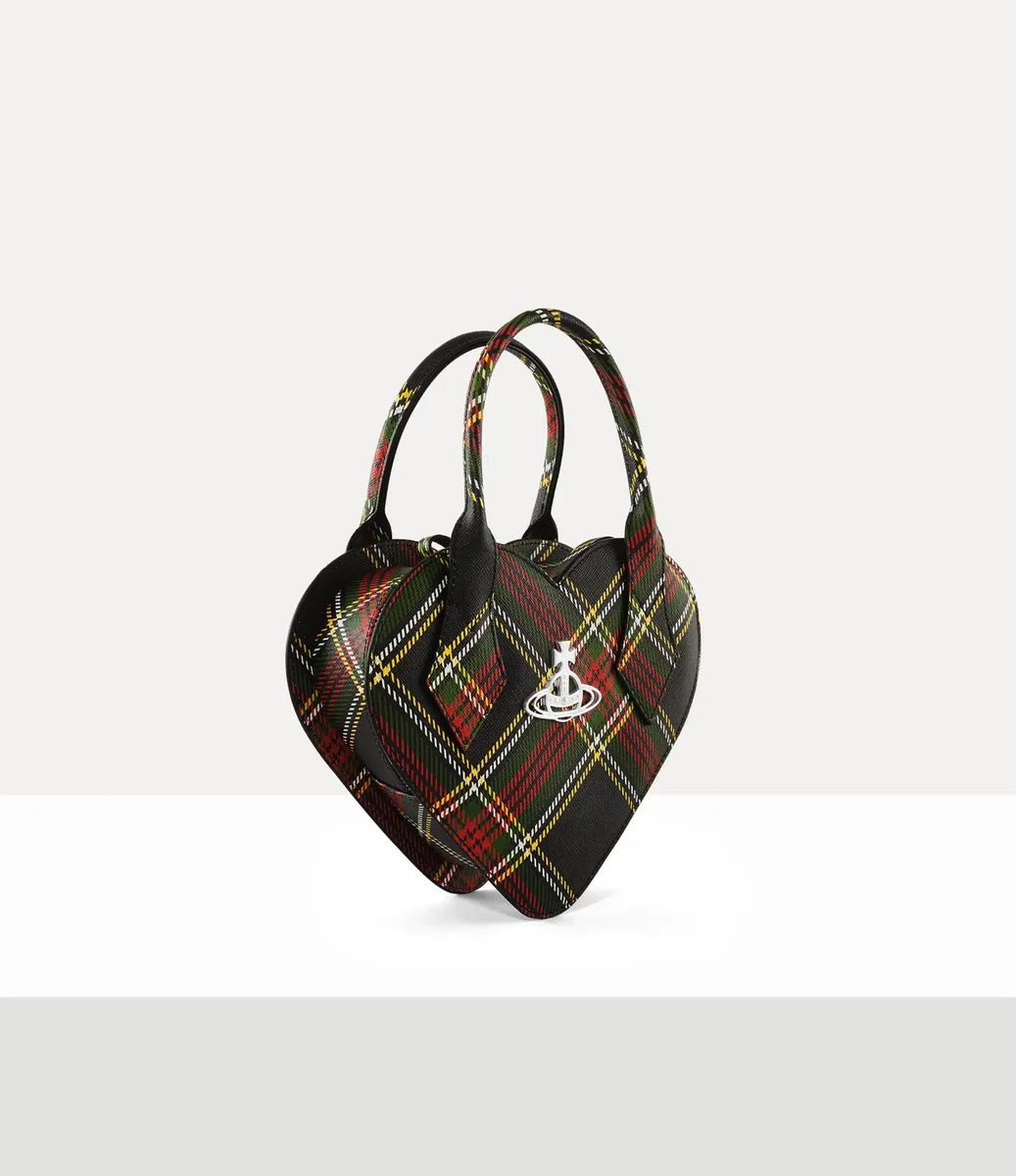 Unsere Josephine Heart Umhängetasche präsentiert sich in der ikonischen Herzform des Hauses aus PU-Leder dieser Saison, bedruckt mit dem „Chelsea”-Tartanmuster. Mit kräftigen Farben und klassischen Metallbeschlägen akzentuiert eine polierte Metallkugel die Vorderseite, während das Innere mit dem charakteristischen Union-Jack-Futter eine Hommage an die Herbst/Winter-Kollektion 2002 „Anglophilia” darstellt.