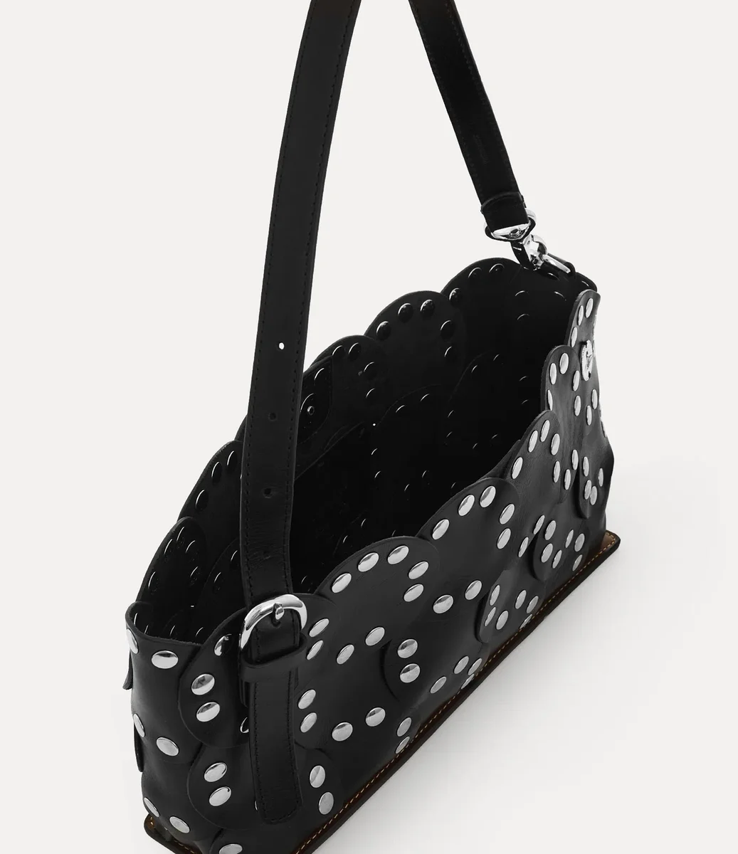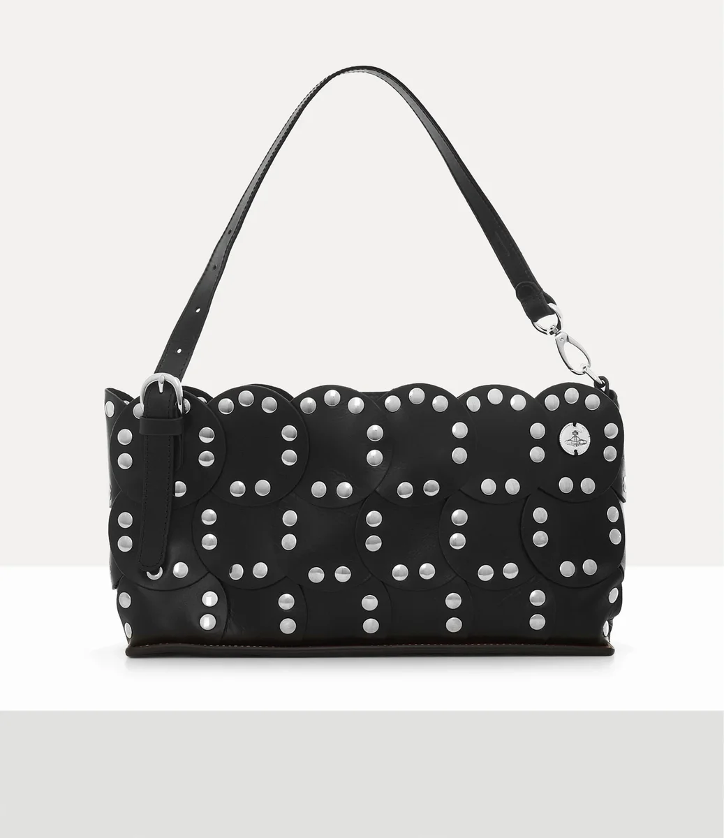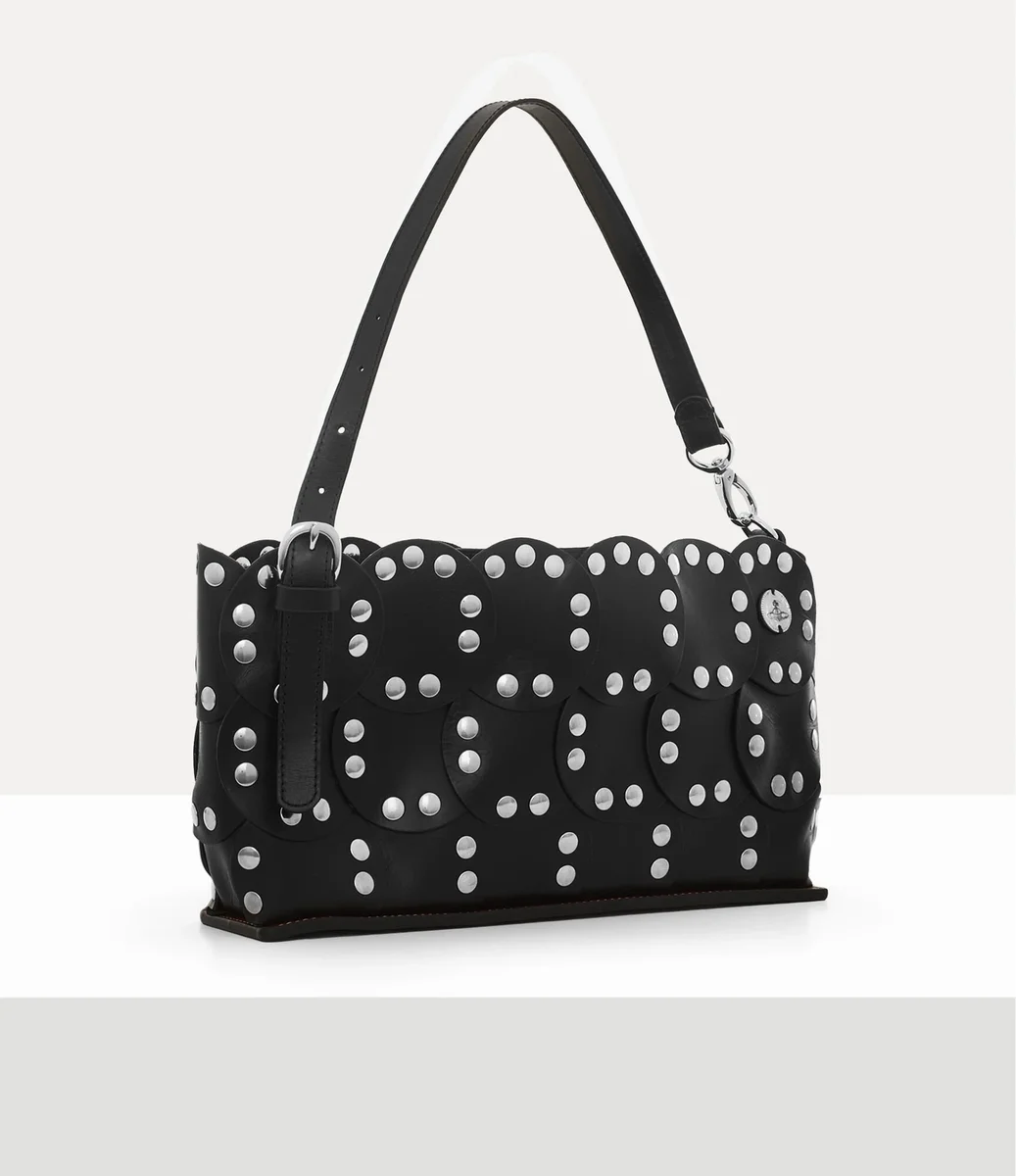 Die Liz Concho Handtasche, die in Zusammenarbeit mit der Ethical Fashion Initiative für unsere Made in Kenya-Kollektion hergestellt wurde, besteht aus handgeschnittenen Lederkreisen, die miteinander verbunden sind und an eine alte Rüstung erinnern. Sie ist mit einem baumelnden Kugelanhänger und einem verstellbaren Riemen mit Rollschnalle versehen.