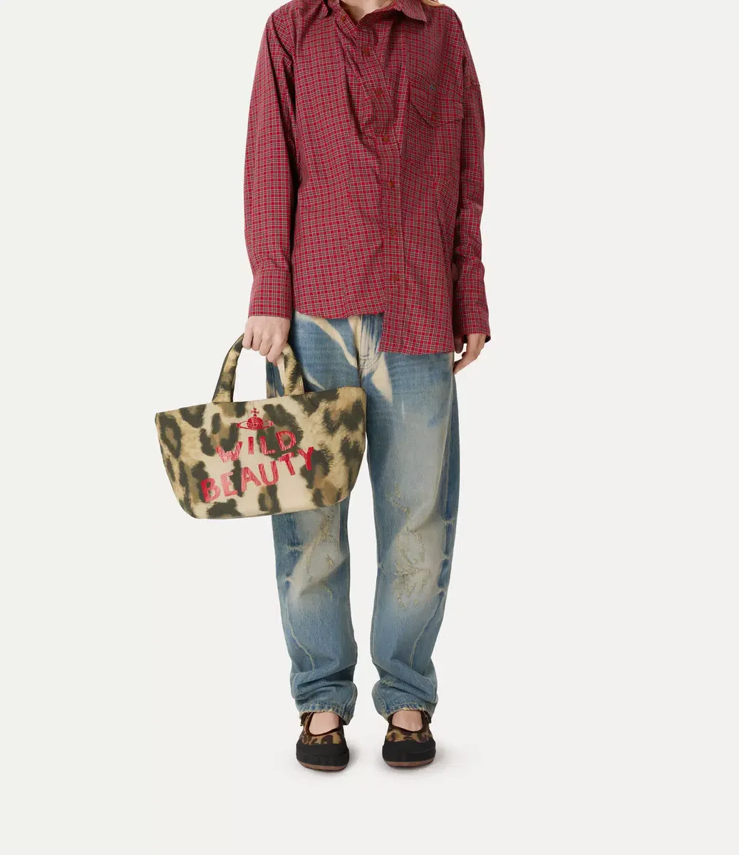 Die Vivienne Westwood Maud Medium Tragetasche ist aus gepolstertem Nylon gefertigt und mit einem auffälligen Leopardenmuster verziert.