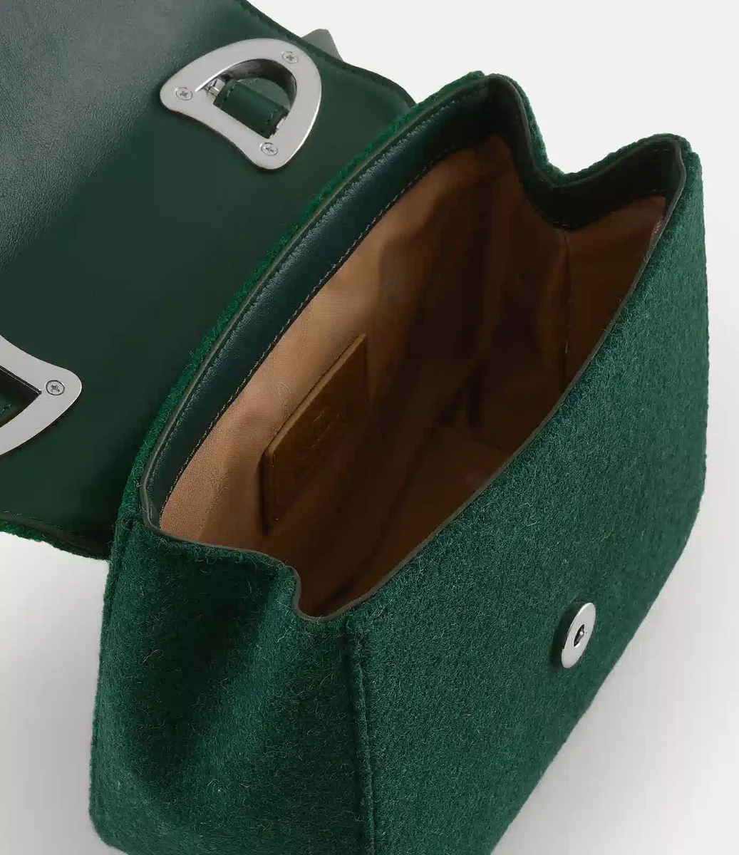 Die Vivienne Westwood Linda Umhängetasche ist aus Wolle gefertigt und mit unserem ikonischen Orb-Motiv verziert, das in dieser Saison in einer neuen Tufting-Ausführung erscheint.