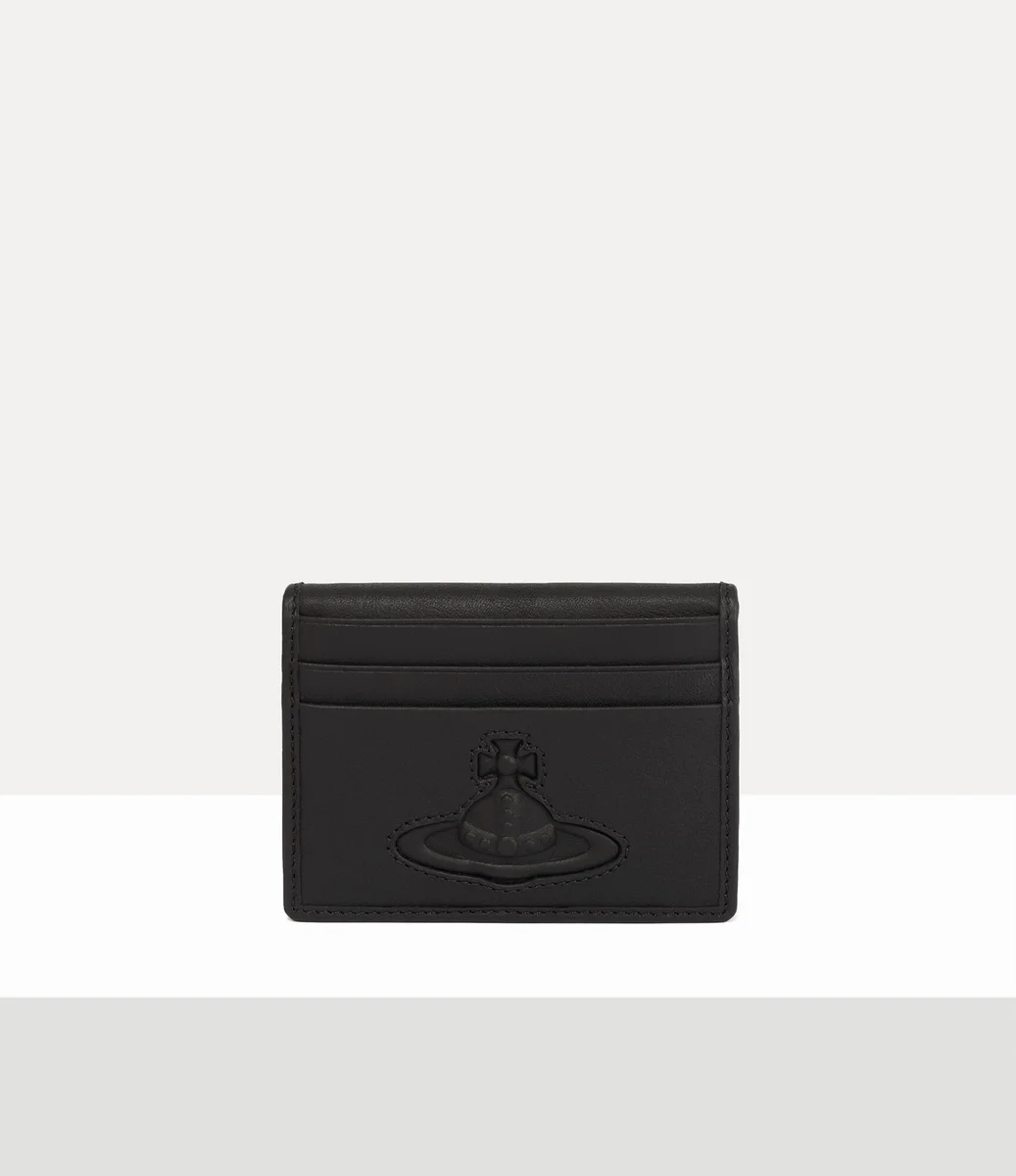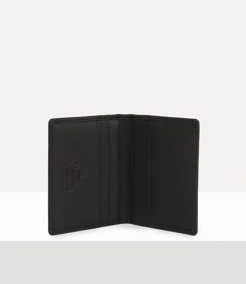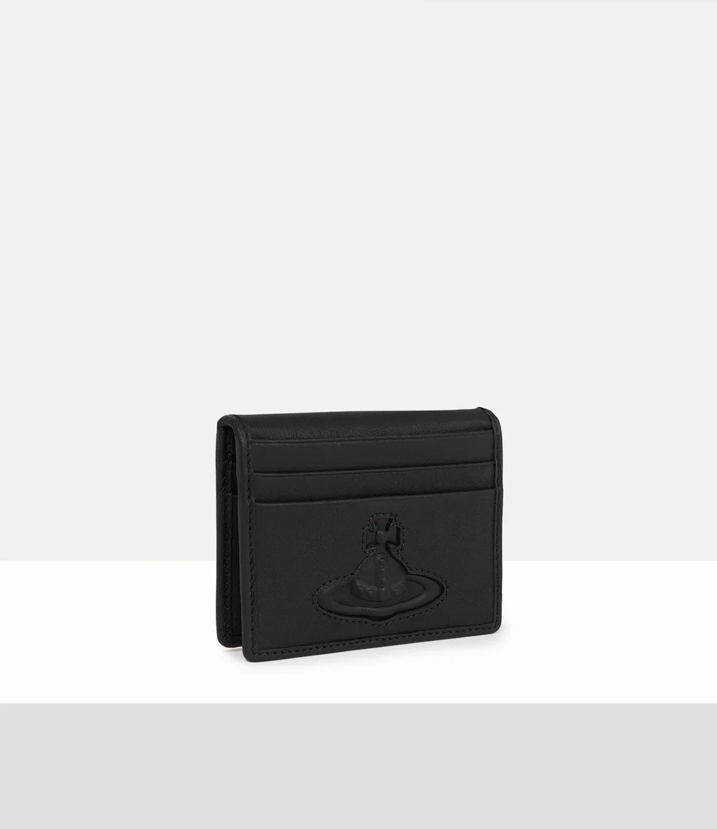 Der Vivienne Westwood Man Kartenhalter hat eine zweifach gefaltete Silhouette, zwölf Kartenfächer und ein dreidimensionales Kugelmotiv auf der Vorderseite.