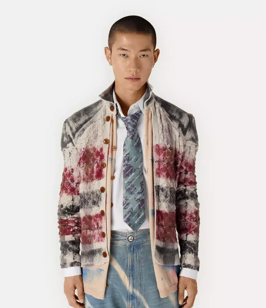 Unsere Krawatte ist mit dem charakteristischen Toile-de-Jouy-Print versehen, der sich mit seinem romantischen pastoralen Motiv über das gesamte Design erstreckt. Das Modell ist mit einer breiten Klinge geschnitten, die sich zu einer klassischen spitzen Spitze verjüngt, und mit einem auffälligen „Westwood”-Schriftzugmotiv verziert, das sich in verschiedenen Schriftarten über die gesamte Silhouette wiederholt.p>