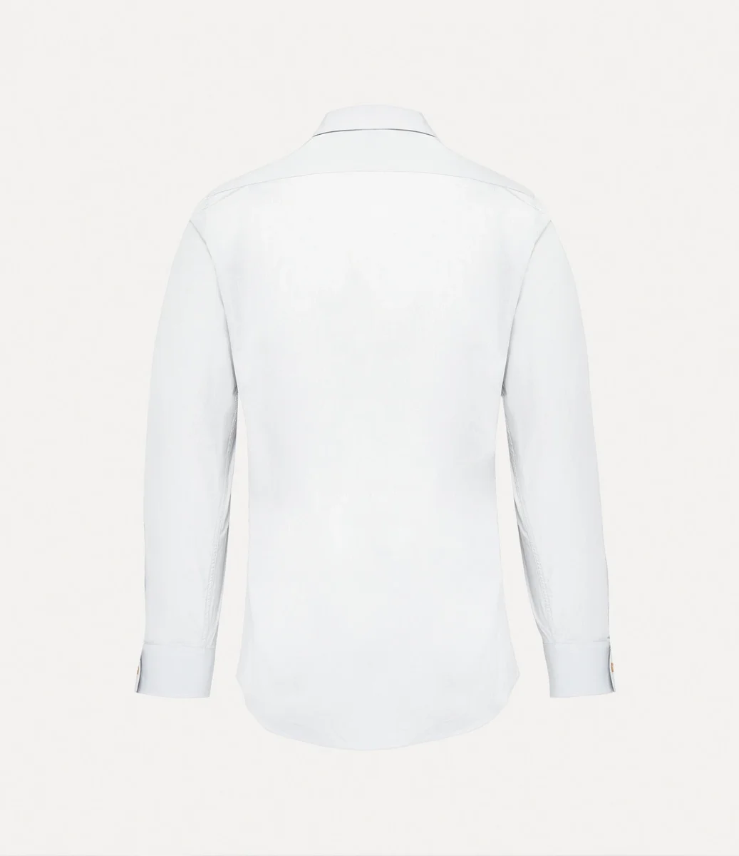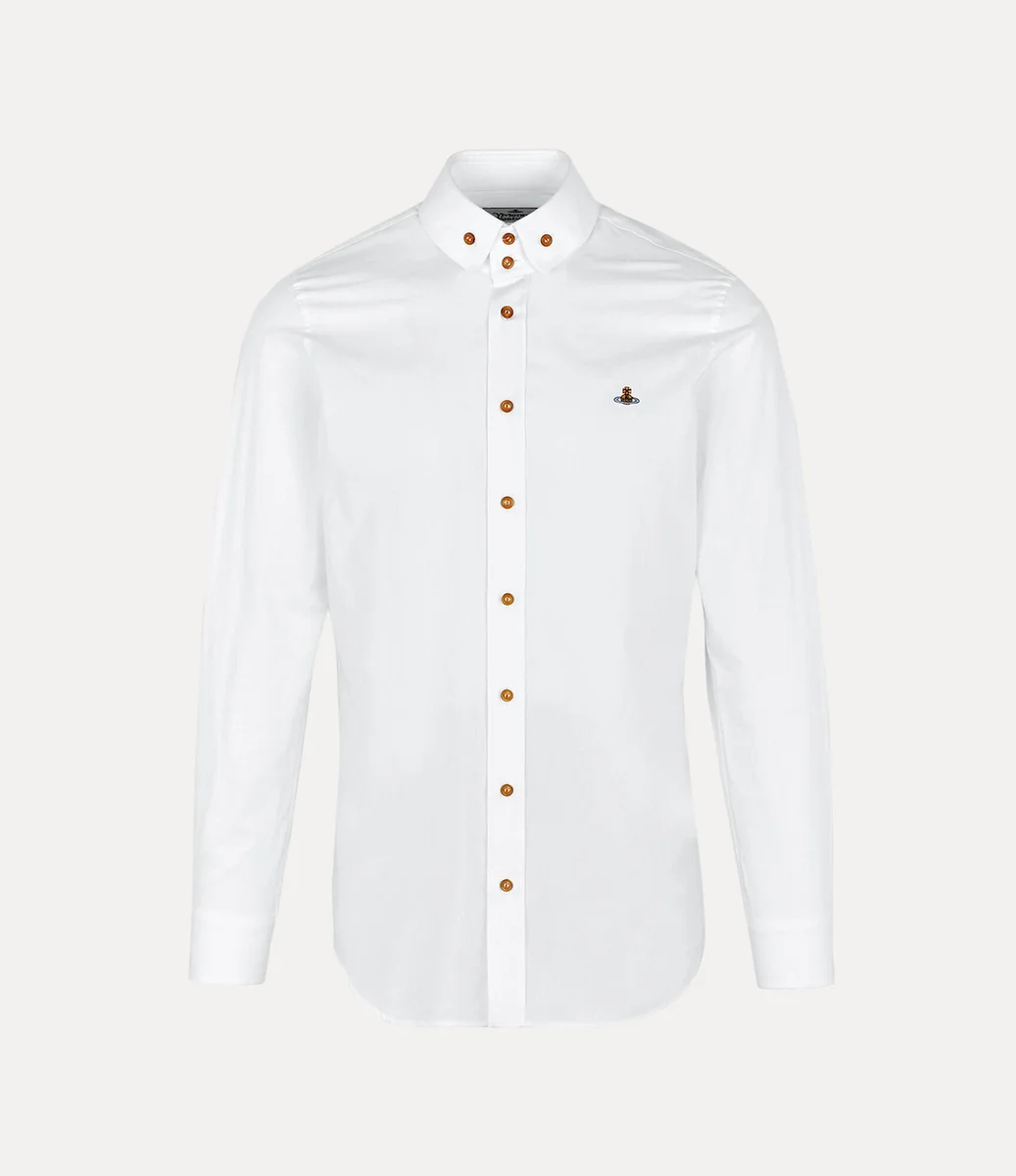 Die Silhouette des Two Button Krall Hemdes ist von einem Archivdesign inspiriert und verfügt über Viviennes ikonischen Zwei-Knopf-Kragen. Das Kleidungsstück ist auf der linken Brustseite mit unserer charakteristischen Orb-Stickerei verziert – ein Synonym für Viviennes Vision, Tradition in die Zukunft zu tragen.