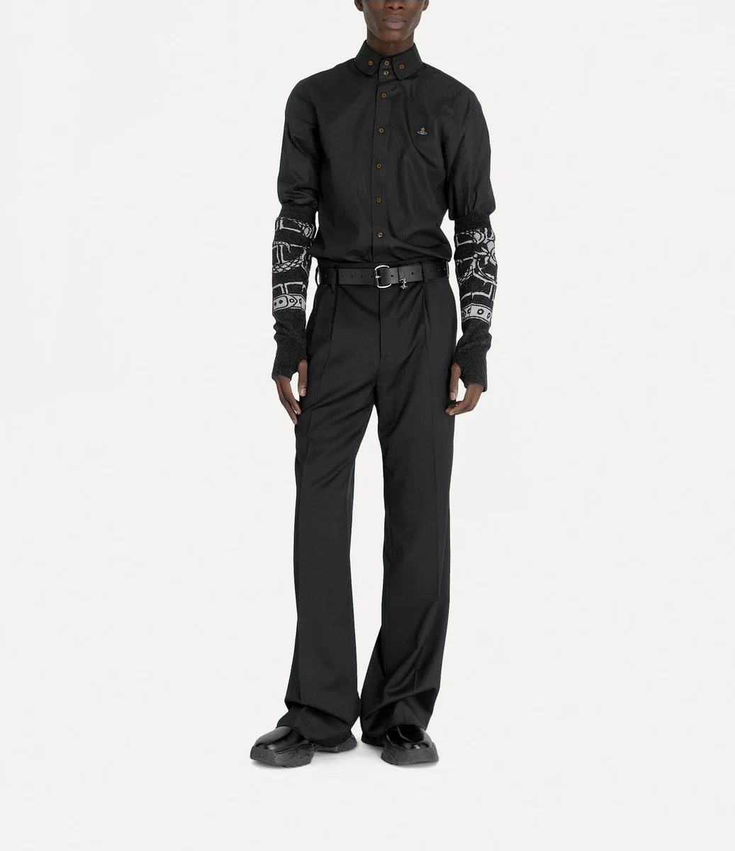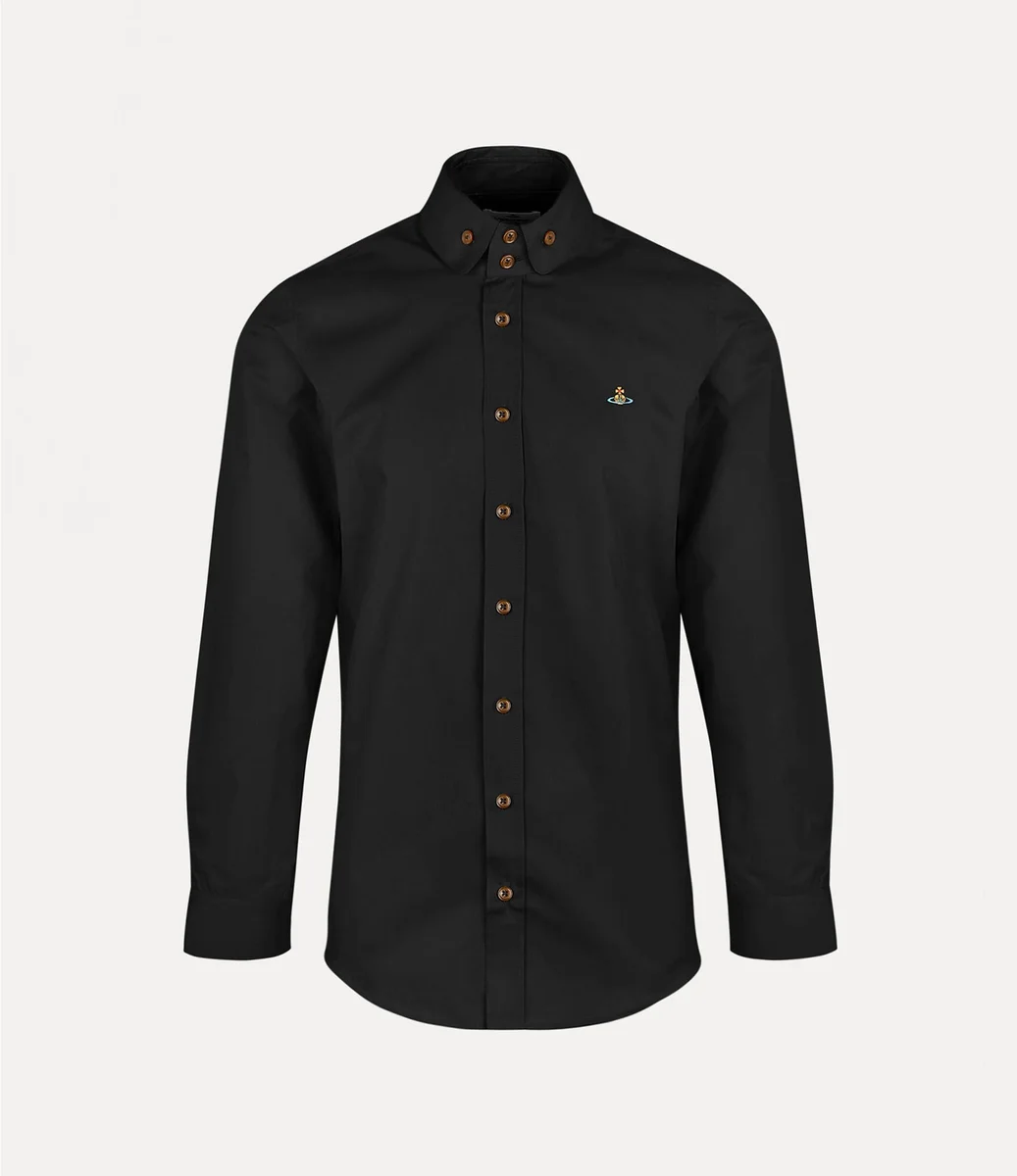 Die Silhouette des Two Button Krall Hemdes ist von einem Archivdesign inspiriert und verfügt über Viviennes ikonischen Zwei-Knopf-Kragen. Das Kleidungsstück ist auf der linken Brustseite mit unserer charakteristischen Orb-Stickerei verziert – ein Synonym für Viviennes Vision, Tradition in die Zukunft zu tragen.