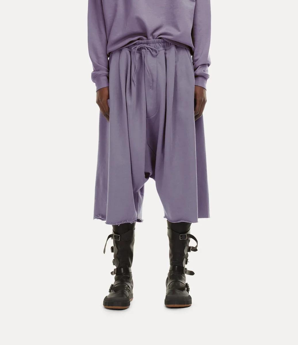 Unsere Balloon Shorts haben einen mittelhohen, elastischen Bund, der in eine voluminöse, drapierte Silhouette mit tiefem Schritt und unversäuberten Säumen unterhalb des Knies übergeht. Das Modell verfügt über zwei tiefe Seitentaschen und einen Kordelzug mit Metallenden für eine individuelle Passform.