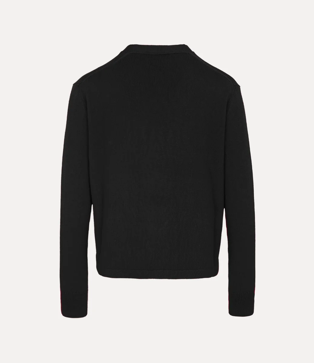 Unser Archiv-Cardigan Alex wurde in dieser Saison überarbeitet und wird nun aus einer weichen Baumwoll-Kaschmir-Mischung angeboten. Das Modell verfügt über eine Knopfleiste vorne, einen V-Ausschnitt und ein Orb-Detail auf der linken Brustseite – ein Synonym für Viviennes Vision, Tradition in die Zukunft zu tragen.