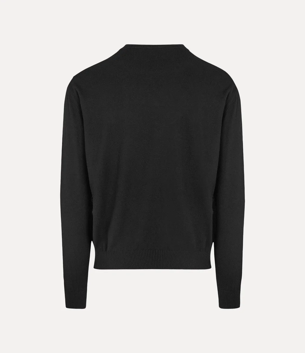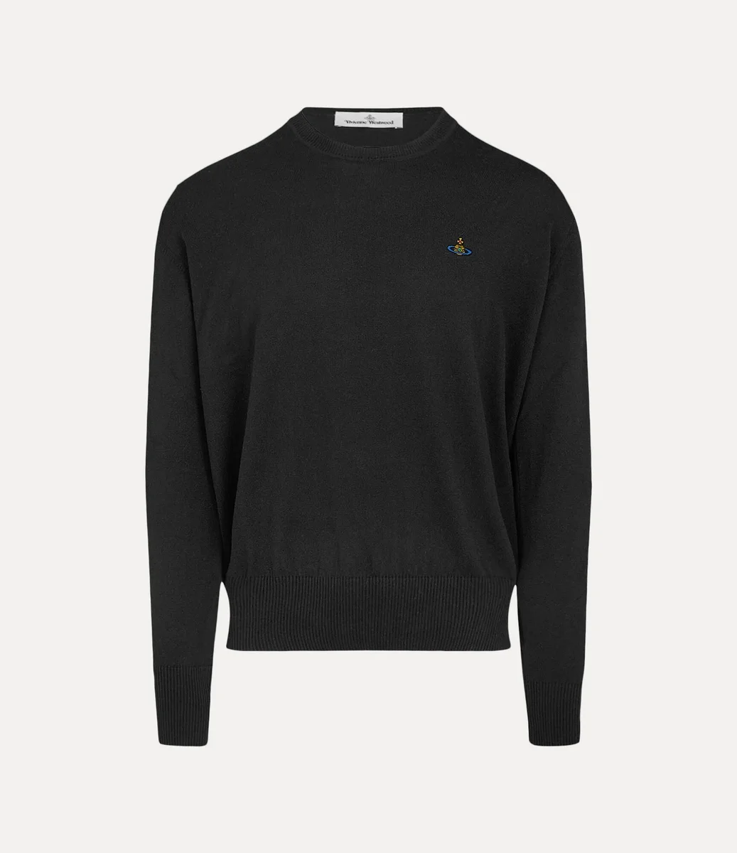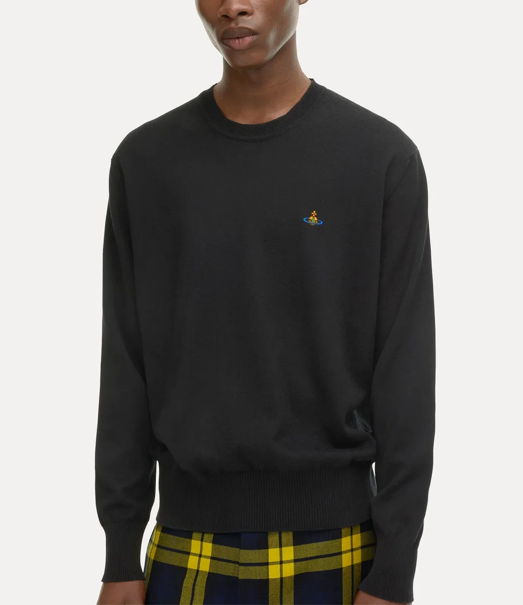 Unser Pullover Alex mit Rundhalsausschnitt wurde in dieser Saison neu interpretiert und ist nun in einer weichen Baumwoll-Kaschmir-Qualität erhältlich. Das Modell ziert auf der linken Brustseite das mehrfarbige Kugelmotiv des Hauses, das vom kugelförmigen Emblem unseres Hauses inspiriert ist und an Viviennes Vision erinnert, Tradition in die Zukunft zu tragen.