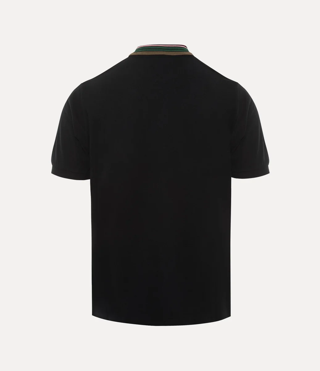 Unser klassisches Polohemd verfügt über einen kontrastierenden Kragen mit mehrfarbigen Streifendetails. Das aus weicher Baumwolle gefertigte Kleidungsstück ist auf der linken Brustseite mit einem gestickten Kugelmotiv verziert, das Tradition symbolisiert und von den himmlischen Ringen des Saturn umgeben ist, die für die Zukunft stehen.