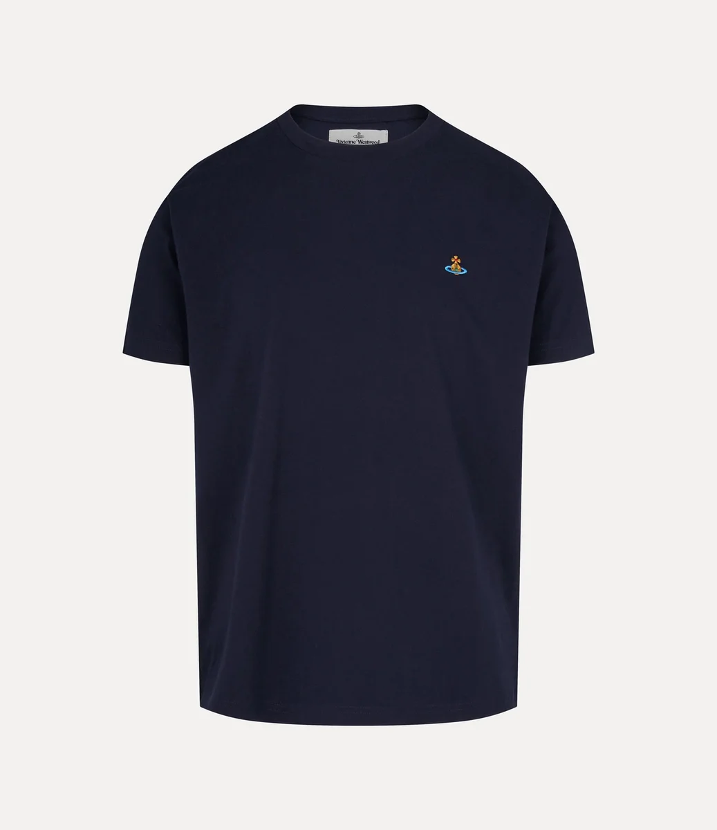 Unser klassisches T-Shirt hat eine weiche Baumwollsilhouette mit kurzen Ärmeln und Rundhalsausschnitt. Auf der linken Brustseite befindet sich eine mehrfarbige Orb-Stickerei – ein Symbol für Viviennes Vision, Tradition in die Zukunft zu tragen.