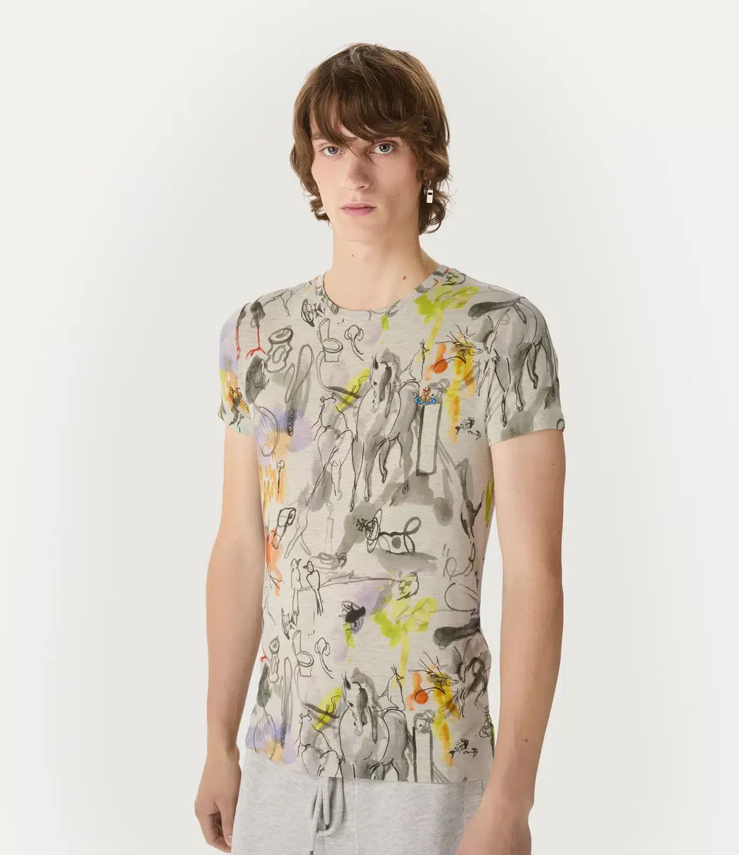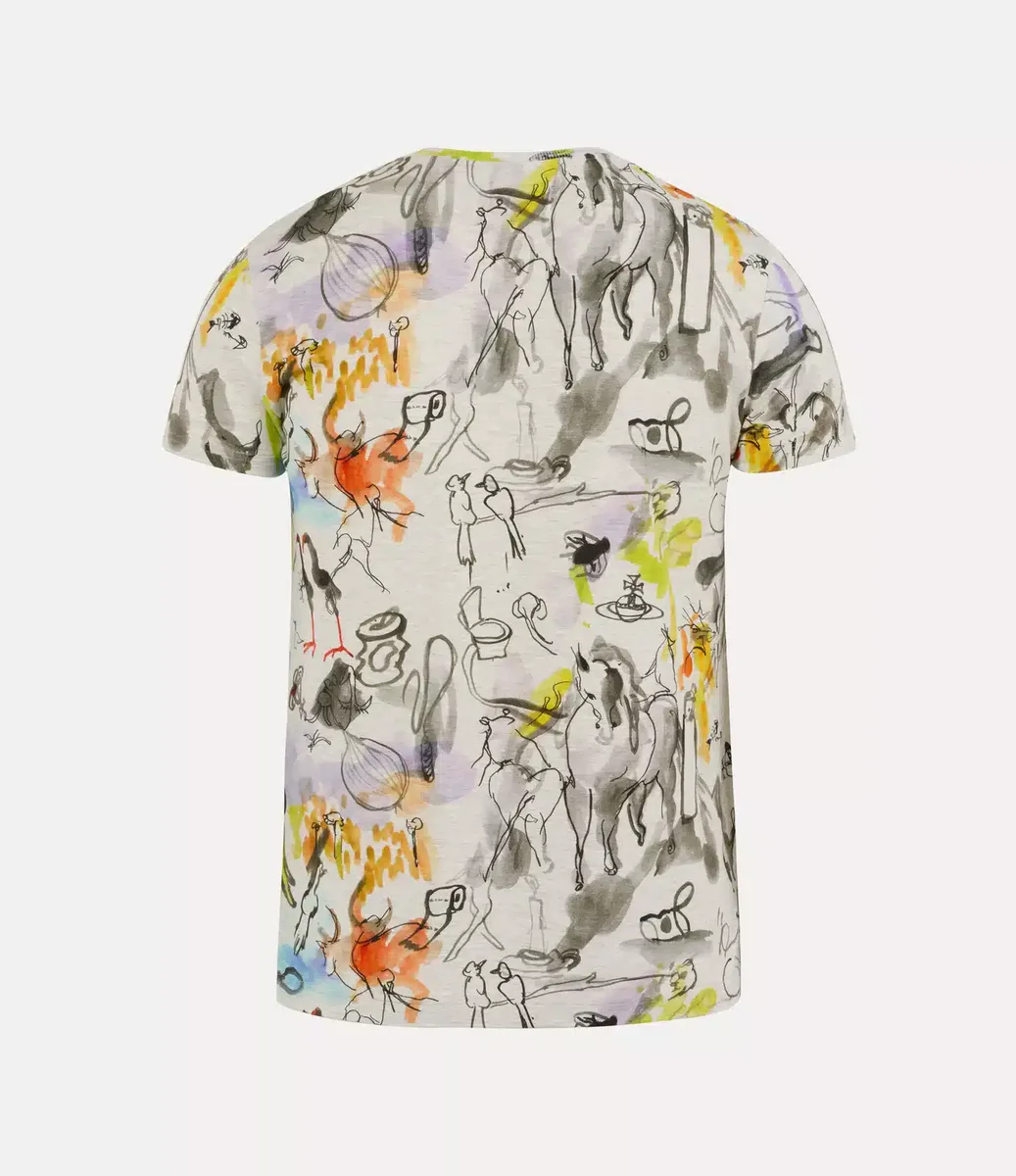 Unser charakteristisches Peru T-Shirt ist aus einer weichen Baumwollmischung gefertigt und mit dem „Wonderland”-Motiv dieser Saison bedruckt, das aus einer Reihe komplexer, handgezeichneter Skizzenmotive besteht, die mit malerischen Aquarellspritzern in leuchtenden Farbtönen überlagert sind. Das Design hat eine schmale Silhouette mit klassischem Rundhalsausschnitt und wird durch eine mehrfarbige Kugelstickerei auf der Brust abgerundet.