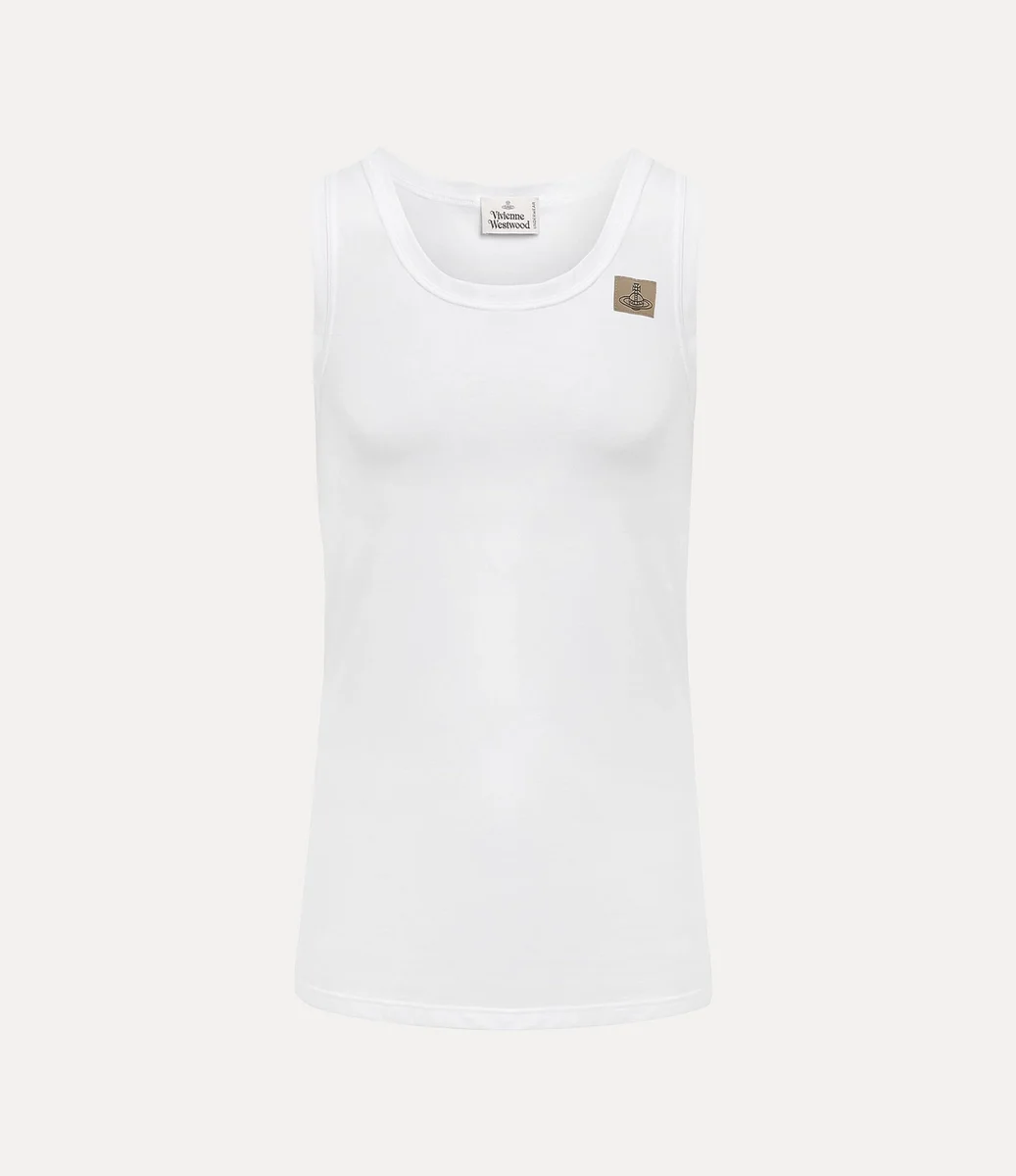 Die Uni-Weste von Vivienne Westwood besteht aus weicher Baumwolle, hat eine ärmellose Silhouette, einen U-Ausschnitt und einen gewebten Aufnäher mit dem Orb-Logo des Hauses auf der Brust.