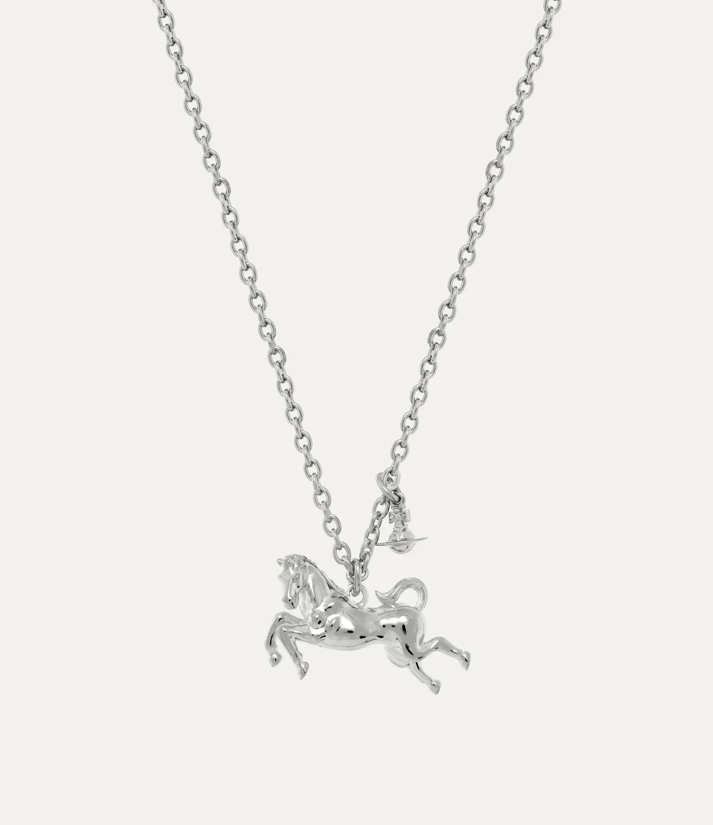 Die Man. Cheval Anhänger-Halskette ist mit dem Pferdemotiv dieser Saison verziert, das Energie und Abenteuer symbolisiert, und hängt an einer zarten platinbeschichteten Kette. Das filigrane Motiv wird durch den ikonischen Kugelanhänger des Hauses ergänzt und mit einem sicheren Karabinerverschluss versehen.