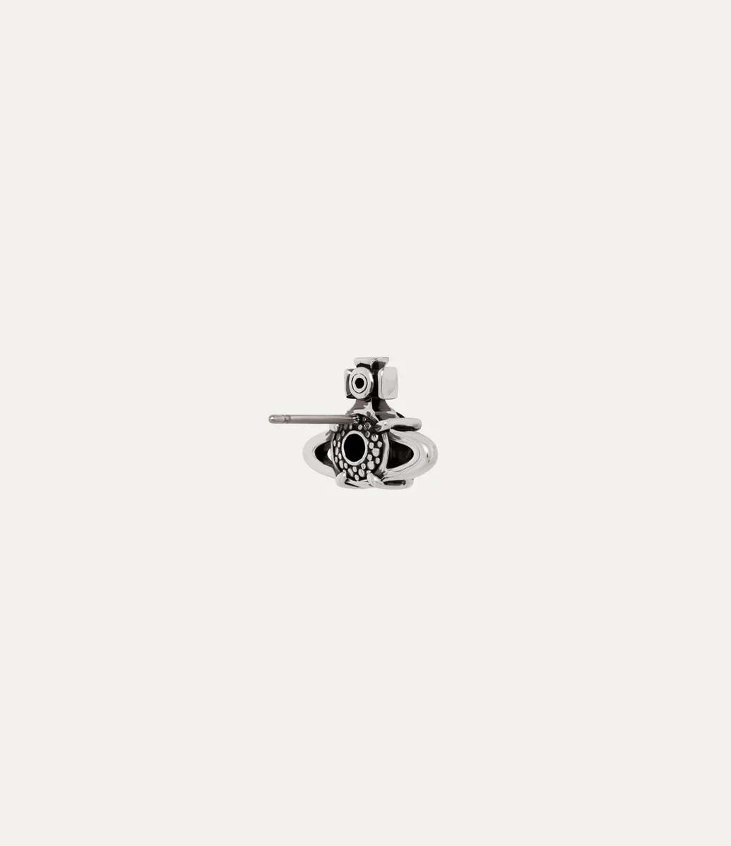 Vivienne Westwood Man. Reina Einzelner Ohrstecker mit silberfarbener Beschichtung und runden schwarzen Edelsteinen.