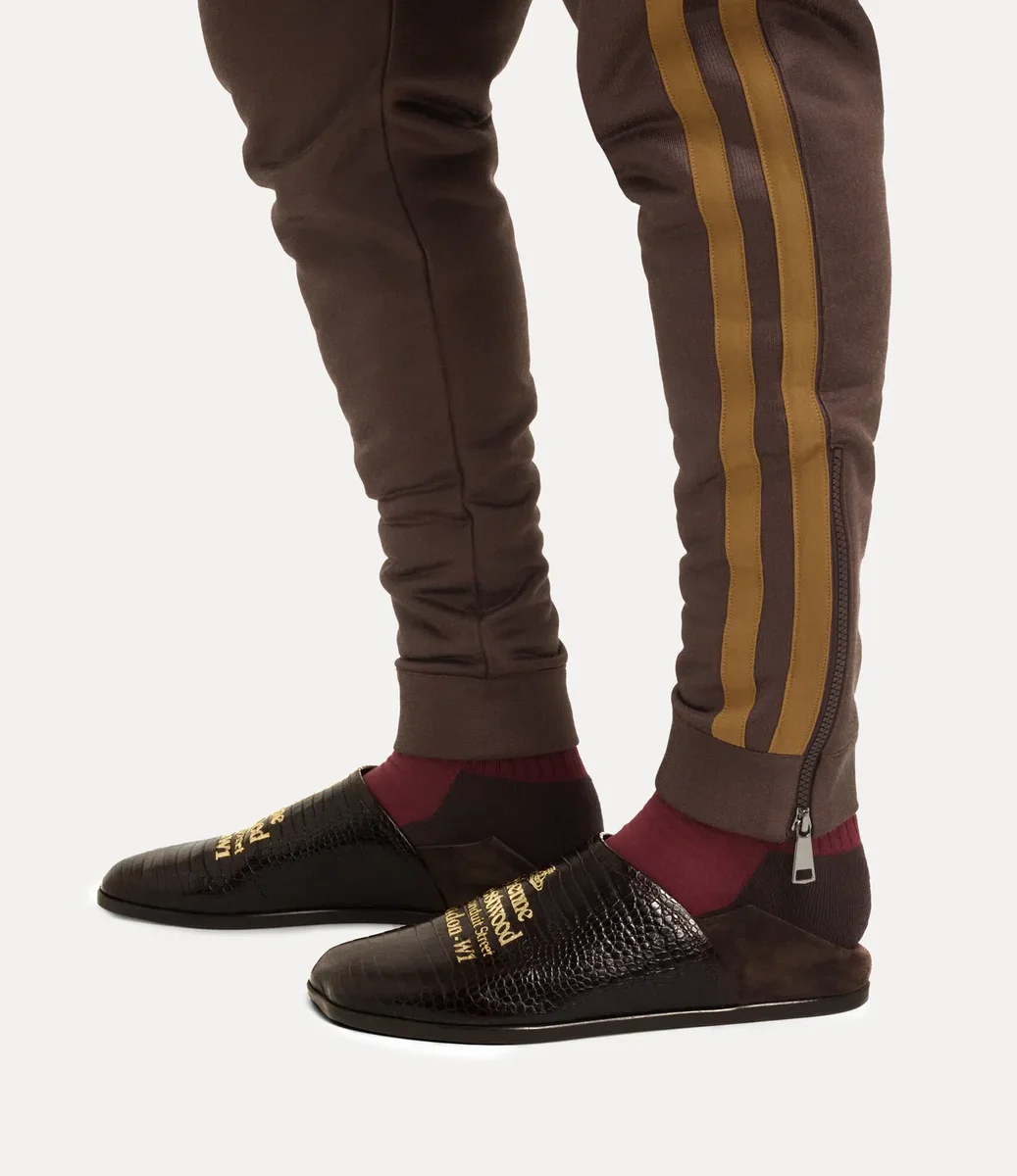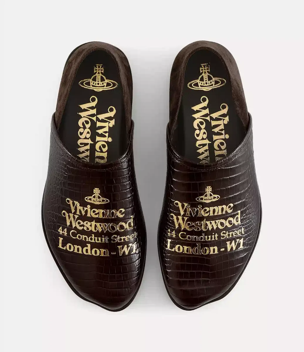 Unser klassischer Tuesday Slipper wurde neu interpretiert und präsentiert sich nun in Leder mit Mini-Krokodilprägung und einem flexiblen Fersenbereich, der nach oben oder unten getragen werden kann. Er wurde in unserer charakteristischen anatomischen Form entworfen, die an die klassischen „Animal Toe”-Schuhe erinnert, und ist auf der Vorderseite mit unserer Londoner Flagship-Adresse geprägt.